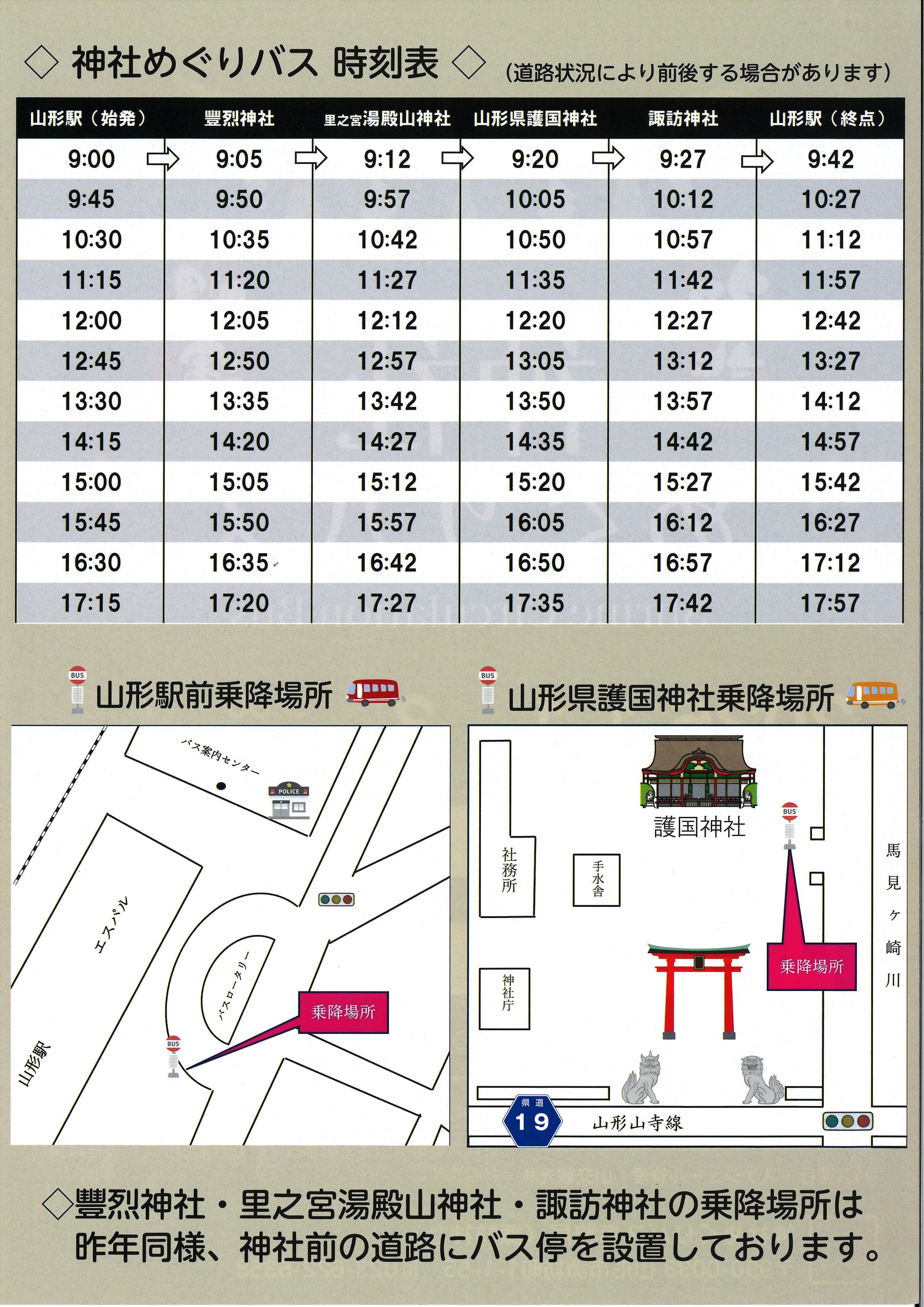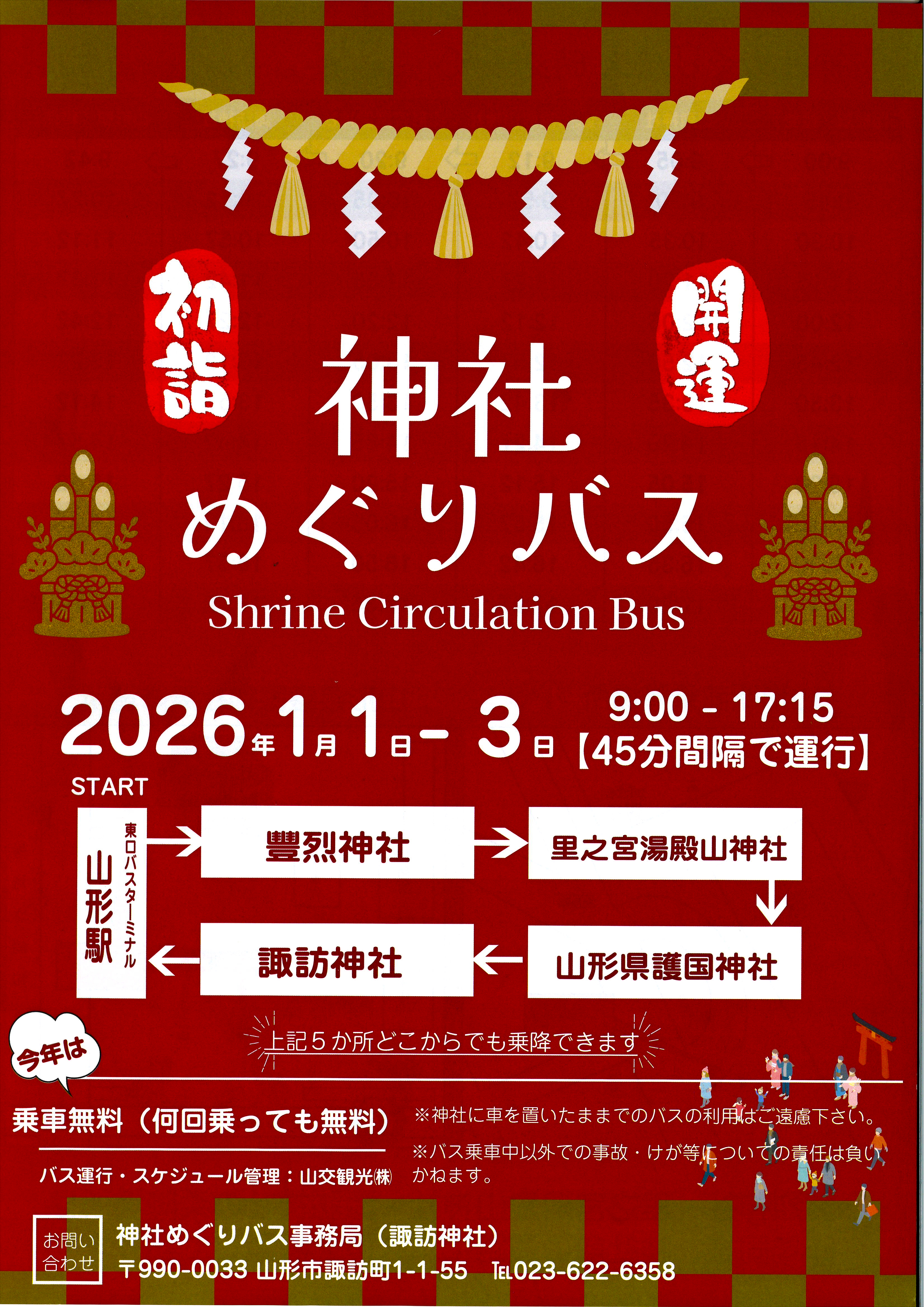 1.1-3 「初詣 開運神社めぐりバス」運行【豊烈神社・湯殿山神社・山形県護国神社・諏訪神社】